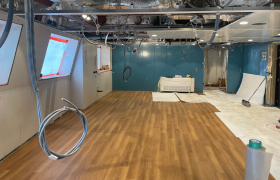 Work is progressing well on the accommodation decks. Most of the ceilings have been installed in the various rooms. The shipyard has started finishing work on the science deck and crew deck. Work is still in full swing in the mess room, lounge, galley and stores.